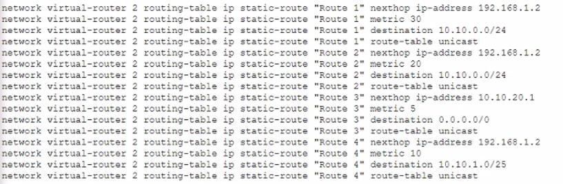 When multiple static routes exist for the same destination on a Palo Alto Networks firewall, the firewall uses Administrative Distance (AD) to determine which route takes precedence. The route with the lowest AD is considered more trustworthy and is installed in the Routing Information Base (RIB) and Forwarding Information Base (FIB).